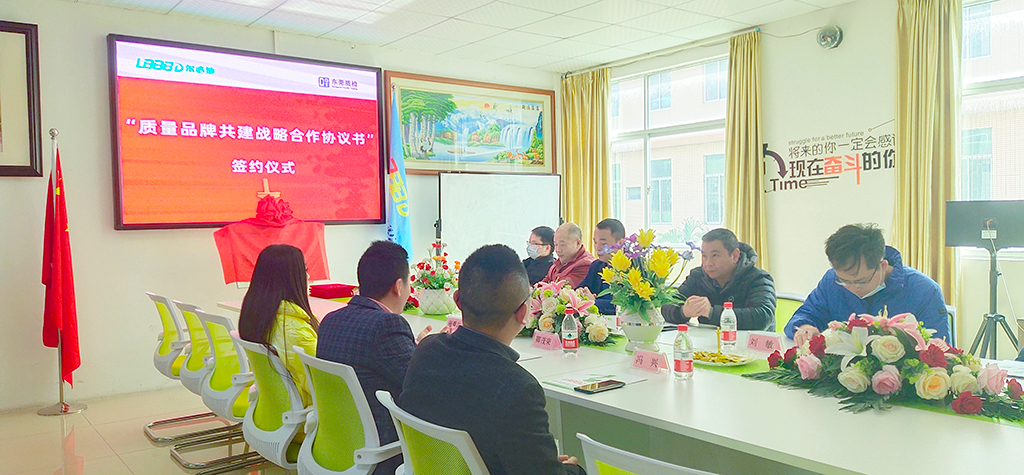 2月23日,東莞市爾必地機(jī)器人有限公司與廣東省東莞市質(zhì)量監(jiān)督檢測中心戰(zhàn)略合作簽署儀式在東莞市爾必地機(jī)器人有限公司總部辦公樓二樓會議室舉行。雙方將就工業(yè)機(jī)器人制造、控制系統(tǒng)軟件開發(fā)等方面展開合作,打造以質(zhì)量品牌、核心技術(shù)為核心的智能制造平臺。爾必地董事長卿茂榮,CEO張愛花,COO馮興;東莞質(zhì)檢主任谷歷文,機(jī)械裝備部部長周智勇,質(zhì)量研究院博士劉敏,機(jī)械裝備部高級工程師伍文峰,后勤部部長金潤平參加簽約儀式。
