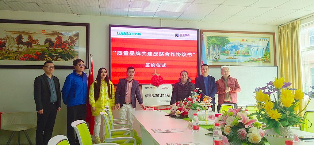 簽約儀式上,卿董事長,谷主任分別代表東莞市爾必地機(jī)器人有限公司和東莞質(zhì)量檢測中心簽署戰(zhàn)略合作協(xié)議,揭牌合影。