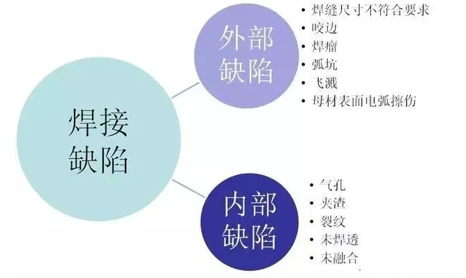 焊接缺陷的種類很多,按其在焊縫中所處的位置可分為外部缺陷和內(nèi)部缺陷兩大類。外部缺陷也叫外觀缺陷。
