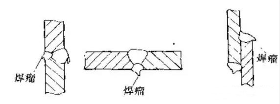 熔化金屬流淌到焊縫以外未熔化的母材上形成金屬瘤。該處常伴有局部未熔合,有時(shí)也稱滿溢。習(xí)慣上,還常將焊縫金屬的多余疙瘩部分稱為焊瘤。