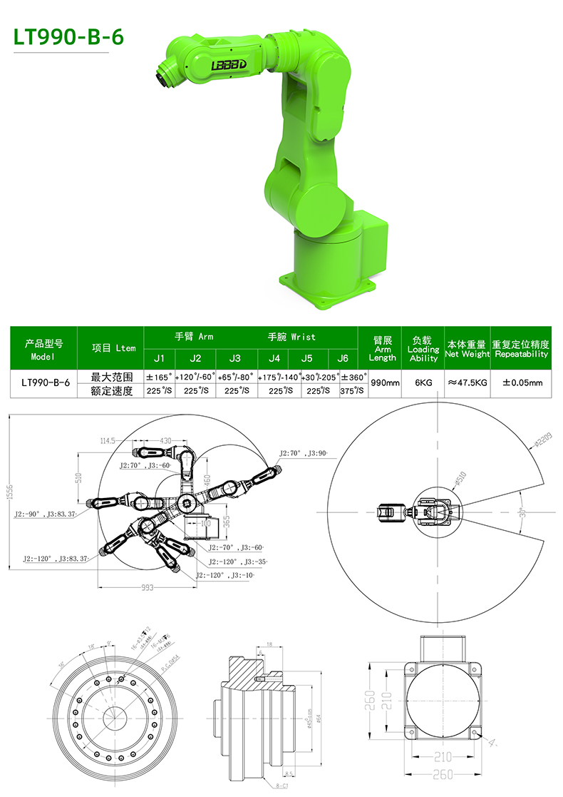 | 型號 | LT990-B-6 | 動作類型 | 多關(guān)節(jié)型 |